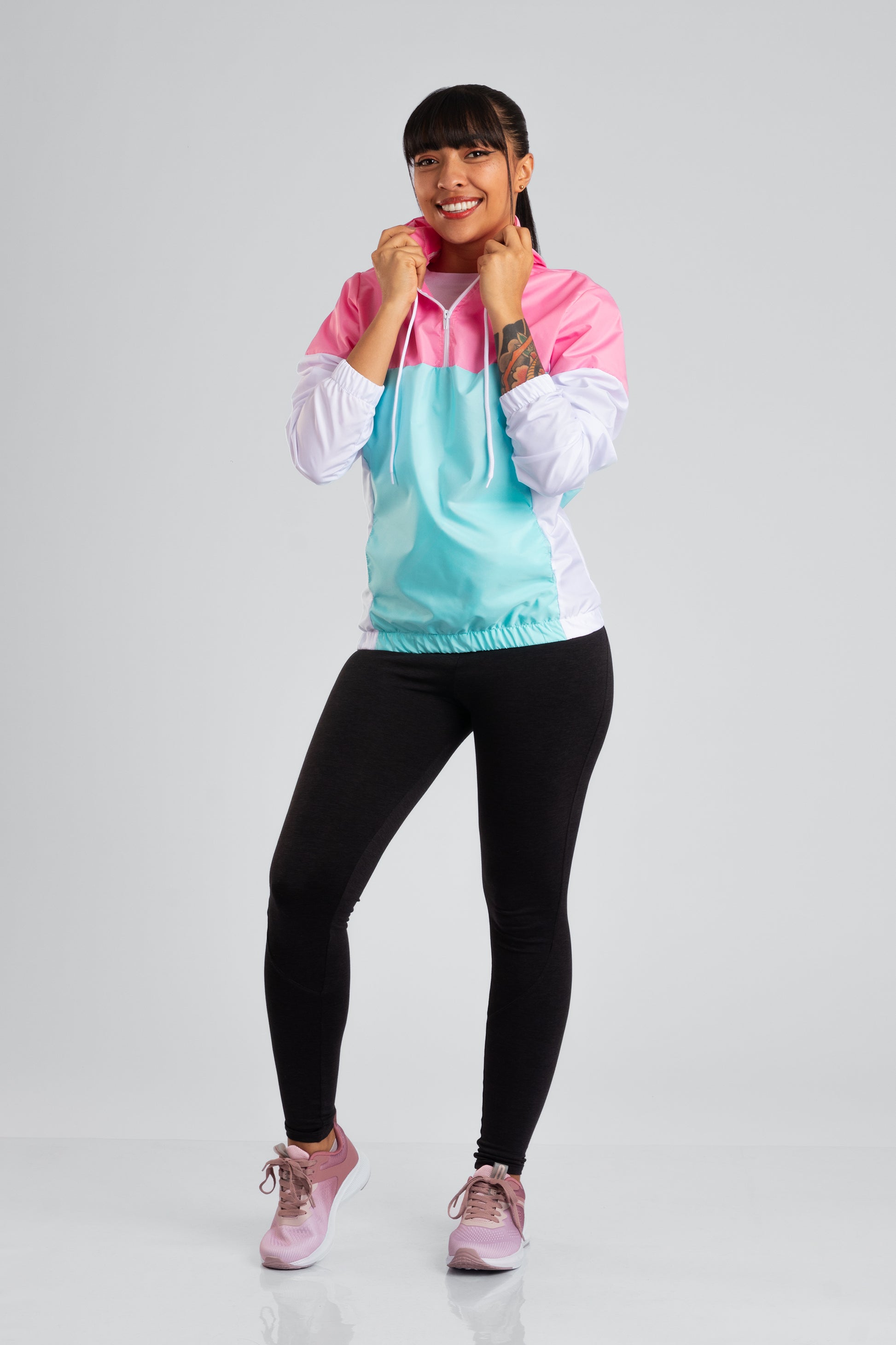 Chaqueta Rompevientos Mujer Rosa x Blanco